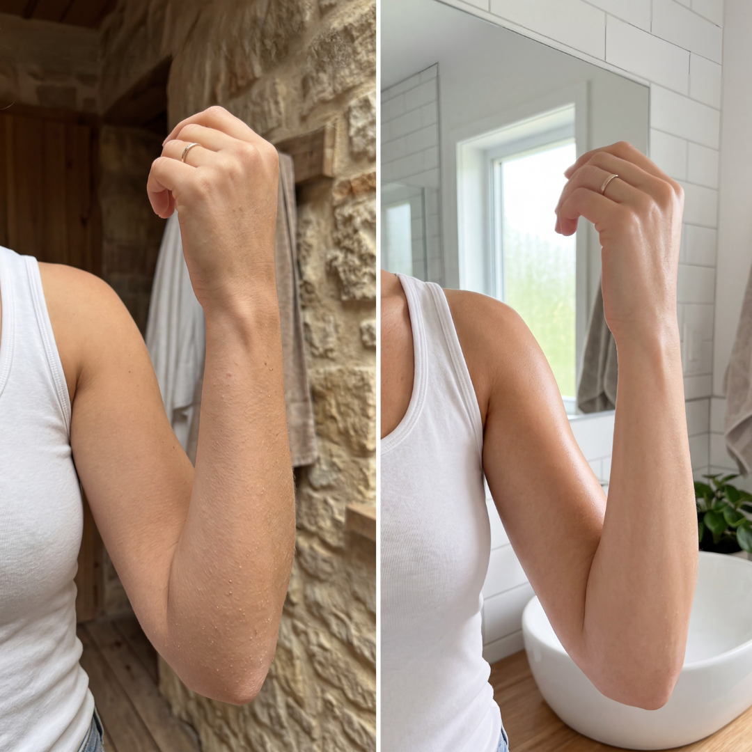 C'est une vraie différence. Dès la première utilisation, votre peau est plus douce, plus lisse, plus éclatante. L'exfoliation mécanique élimine ce que le savon seul ne peut pas, cellules mortes, impuretés incrustées, pores bouchés. Vos soins pénètrent mieux. Votre peau respire.